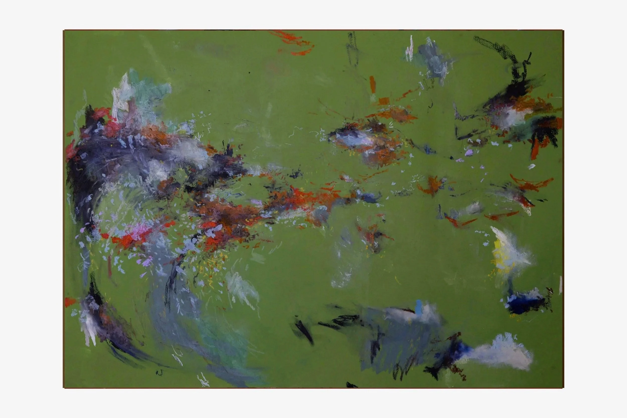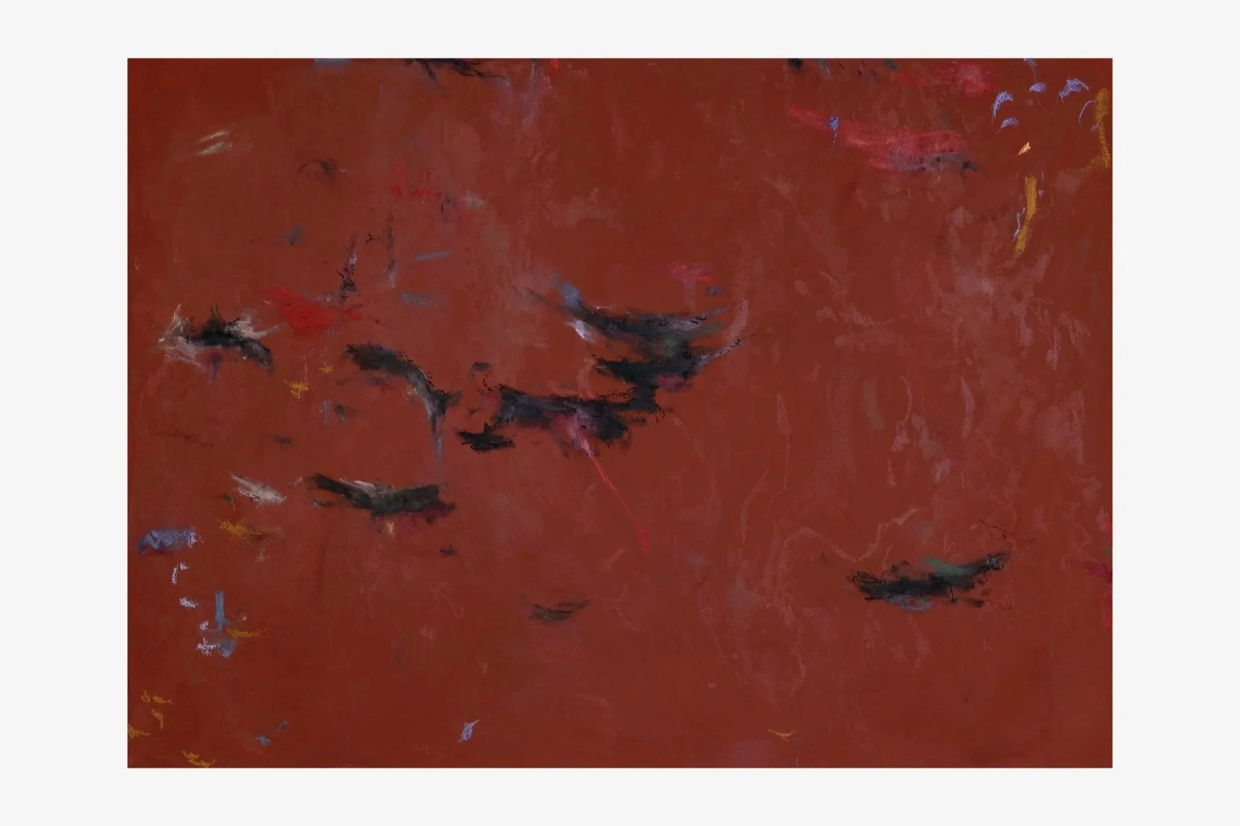 The works draw on three recurring colours found in the November landscape, the red foliage, umber earth and the enduring green of the forest and rice fields each forming part of a measured, three-part response to the environment and its shifting seasons. The hero work in each theme is presented to the right.